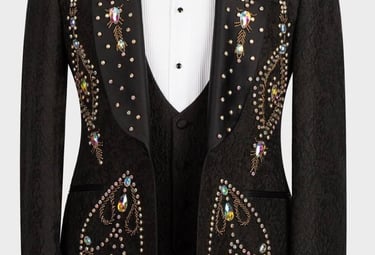 $1099 Package.Custom suit of choice in high-end fabrics, custom shirt, tie of choice. The ultimate expression of prom luxury.